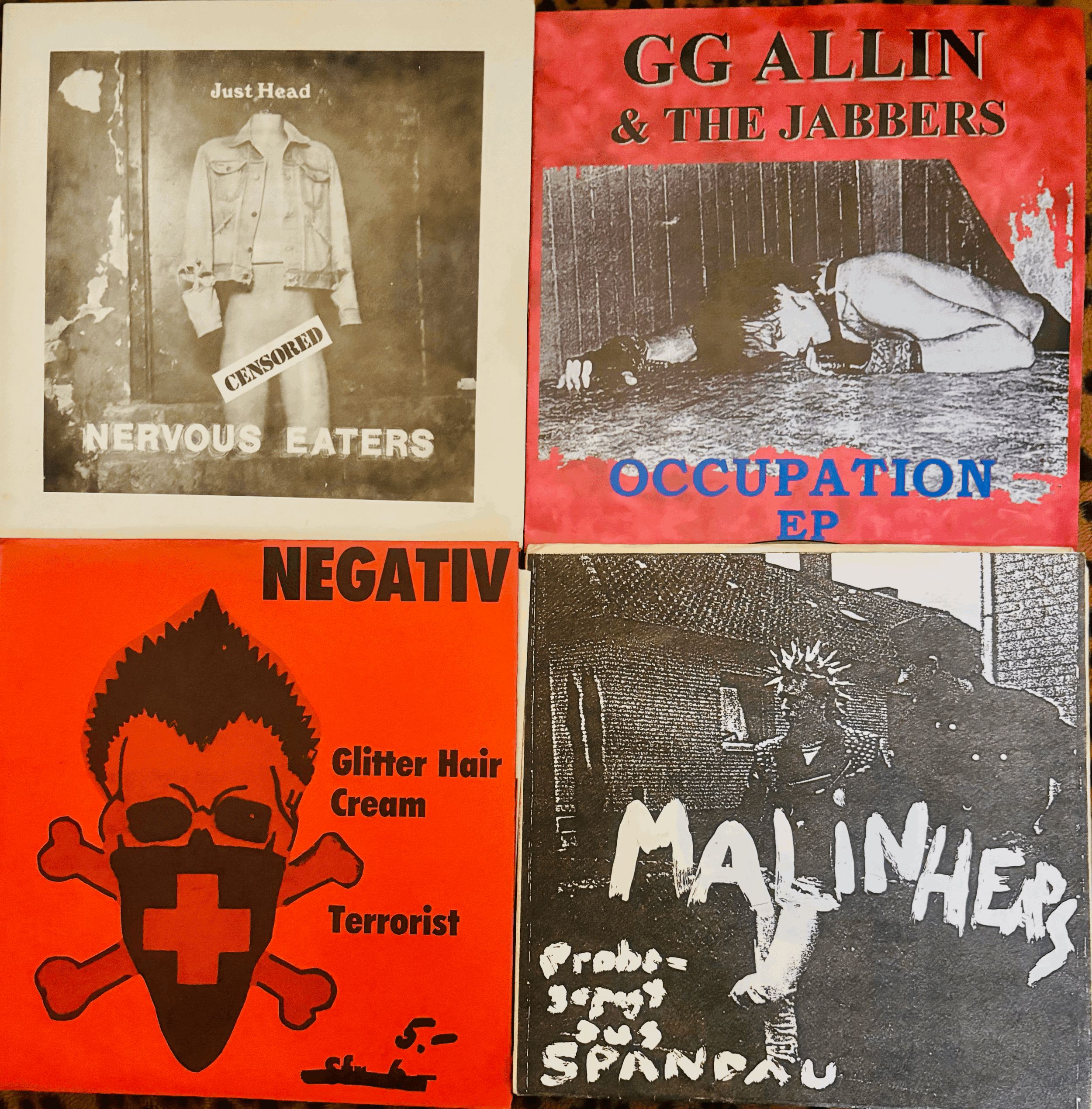 Reviews of four 7” singles or EP’s: Nervous Eaters, GG Allin & Jabbers, Negativ and Malinheads